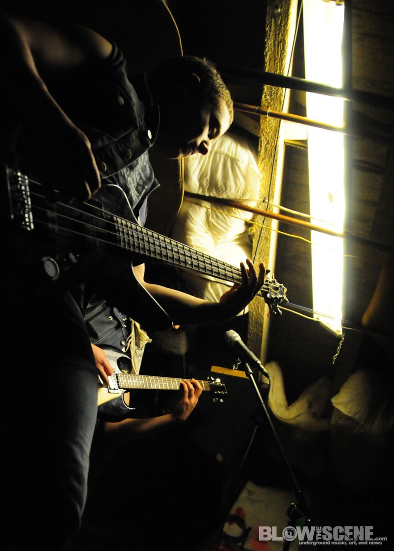 The Shore House has been active for over 5 years now and has seen dozens of tenants come and go and was named after the original group of tenants who moved from the shores of the East Coast. We agreed not to publish the address, location, or last names to help the house remain underground. Original Shore House founder John was there to help with set up (which consisted of picking up some beer cans, moving a few tables and chairs, and directing bands through the handcrafted stage and blanket-style soundproofing system). John also provide James and I with this back-story before leaving the dank basement to the bands.
